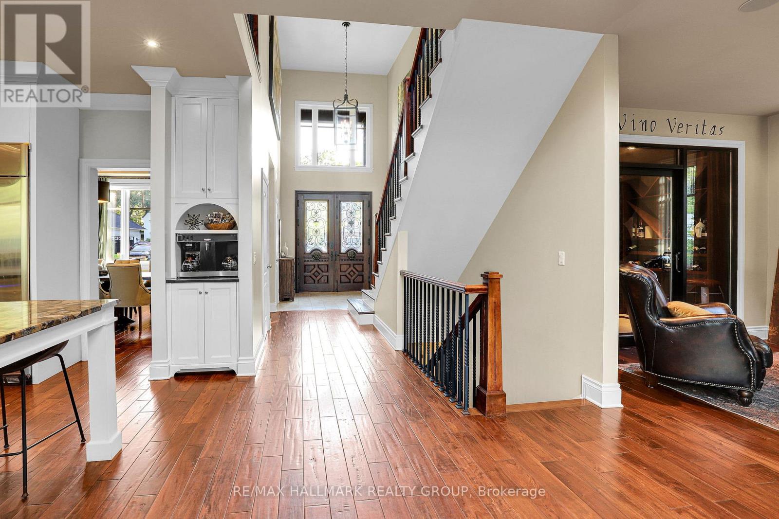Magnificent double lot tucked on a quiet cul-de-sac with no rear neighbours and just steps to Dow's Lake and the Canal, this custom 5-bed, 4-bath residence blends international craftsmanship w/ refined modern living. From hand-carved doors imported from Honduras to rare Black African walnut finishes and counters sourced from a Brazilian riverbed, every detail reflects uncompromising quality. A dramatic two-storey marble-clad foyer opens to den/home office and formal dining room w/ intricate ceiling detail. The main floor is fully finished in hardwood, anchored by a white chef's kitchen w/ a massive Brazilian stone island, professional gas range, steam tray, beverage fridge, and built-in fridge. The adjoining sun-filled family room features coffered ceilings, custom built-ins, a gas fireplace, radiant in-floor heating, and garden doors to multiple outdoor living areas. Seamless indoor-outdoor living includes a covered lounge with gas fireplace, dining patio, and lower terrace designed to accommodate a pool. A serene Zen garden w/ hot tub, flagstone, irrigation, and Wi-Fi landscape lighting completes the private retreat. The main floor also offers a striking climate-controlled wine room w/ a dual-sided fireplace, plus a mudroom w/ dog's shower, cubbies, and two-piece bath. Upstairs are four spacious bedrooms, each w/ double closets and coffered ceilings, a laundry room, and 4-piece bath. The primary suite impresses w/ an oversized bedroom, spa-style ensuite with double shower & vanities, custom walk-in closet, and bonus flex room ideal for a nursery, yoga studio, or lounge. The radiant-heated lower level offers a large recreation room, glass-enclosed gym, 5th bedroom, & full bath. An oversized two-car garage, stone and Hardie board exterior, and meticulous maintenance ensure peace of mind. With plans in place for a pool, this double-lot estate is both turnkey and future-ready...a rare offering of luxury, privacy, and lifestyle in an exclusive setting. (id:2469)