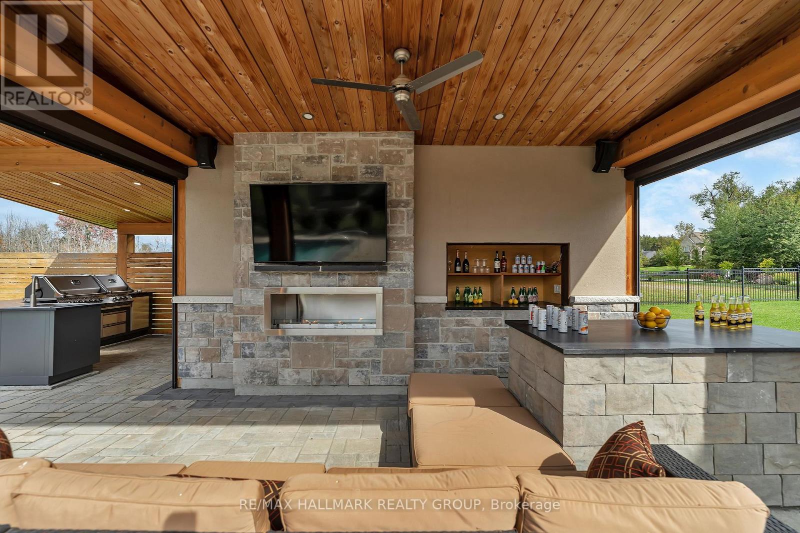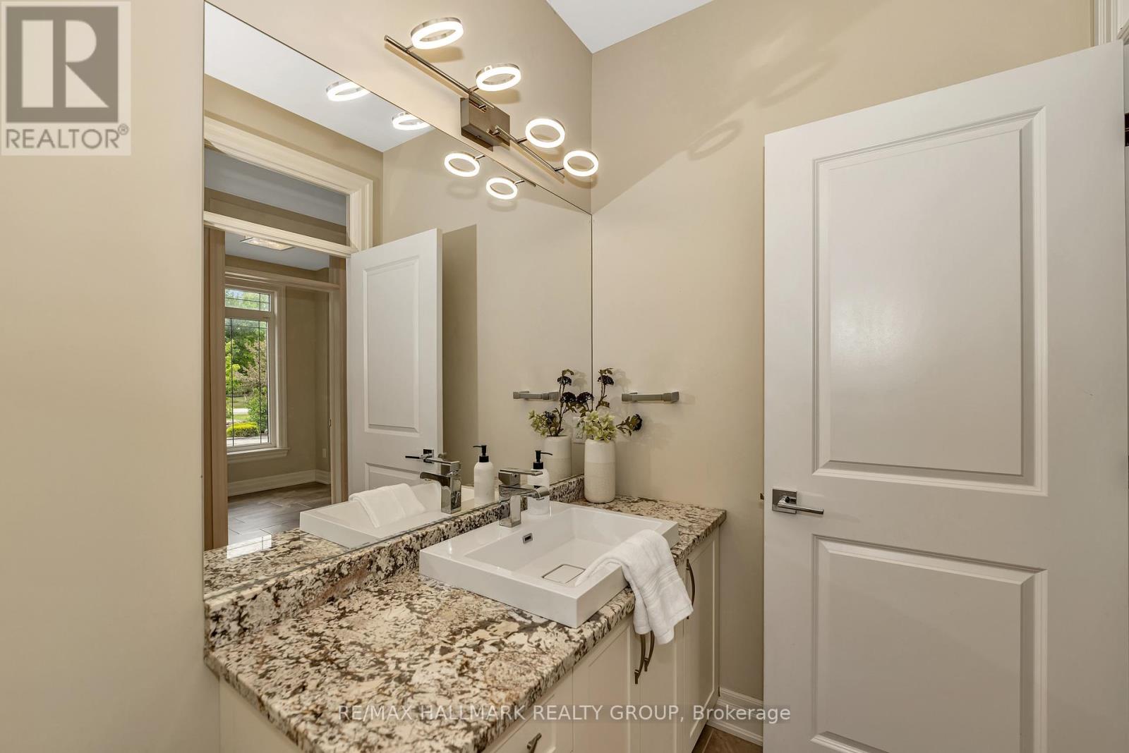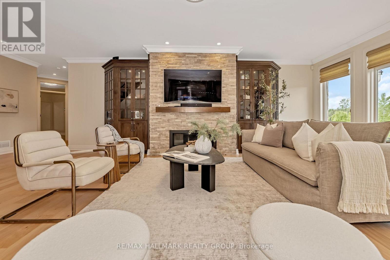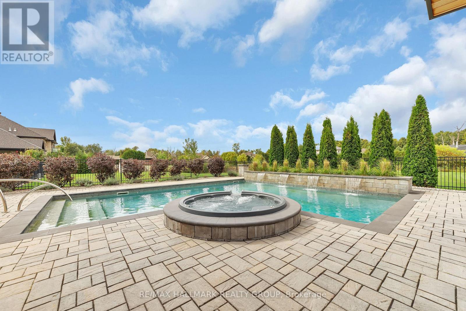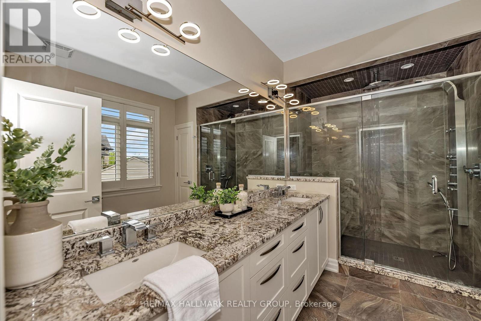 Welcome to this extraordinary estate in the prestigious Rideau Forest community of Manotick. Set on a beautifully landscaped lot, this custom-built residence offers over 7,000 sq. ft. of impeccably designed living space, tailored for both family comfort and grand-scale entertaining. Step inside to a light-filled main floor where elegance meets functionality. The luxurious primary suite is conveniently located on the main level, complete with a spa-inspired ensuite with heated floors and spacious walk-in closet. Each of the four additional bedrooms upstairs feature their own private ensuite and walk-in closet, offering unparalleled privacy and comfort. The heart of the home is the show-stopping chefs kitchen, boasting dual islands, a massive walk-in pantry, and premium appliances, perfect for both casual family meals and gourmet entertaining. A dedicated main floor office provides a quiet retreat for work or study. Unique to this home are two separate garages , two car on each side each leading into well-appointed mudrooms, offering ample storage and family-friendly convenience. Upstairs, a versatile loft area and a large laundry room add to the home's thoughtful layout. The finished lower level is an entertainers dream, featuring a kitchen and bar area, private movie theater that seats 7 in world class recliners, a fitness studio, lounge space, and a luxurious bathroom with a steam shower. Step outside to your private oasis, a resort-style pool with waterfall Hot Tub, complete with a fully equipped pool house and an outdoor kitchen, and lounge area with TV and surround sound, gas fireplace, bar and remote controlled screens, perfect for summer gatherings. Every detail of this home reflects quality, style, and timeless sophistication. An exceptional opportunity to own one of Manoticks finest estates. (id:2469)