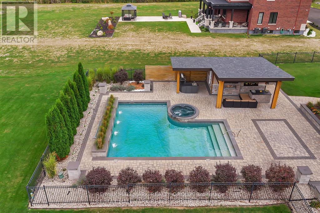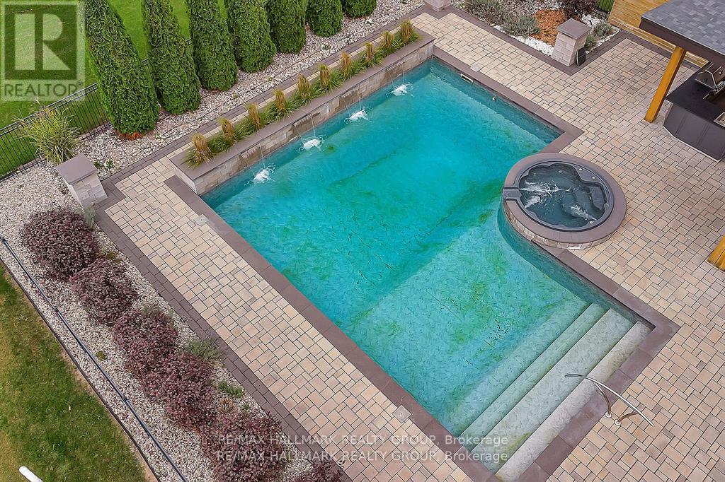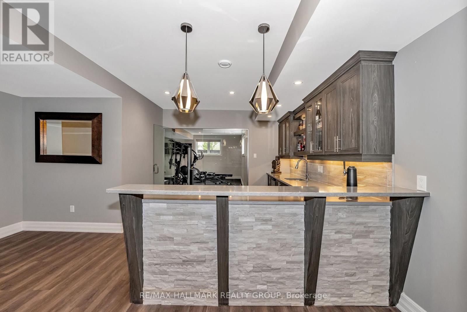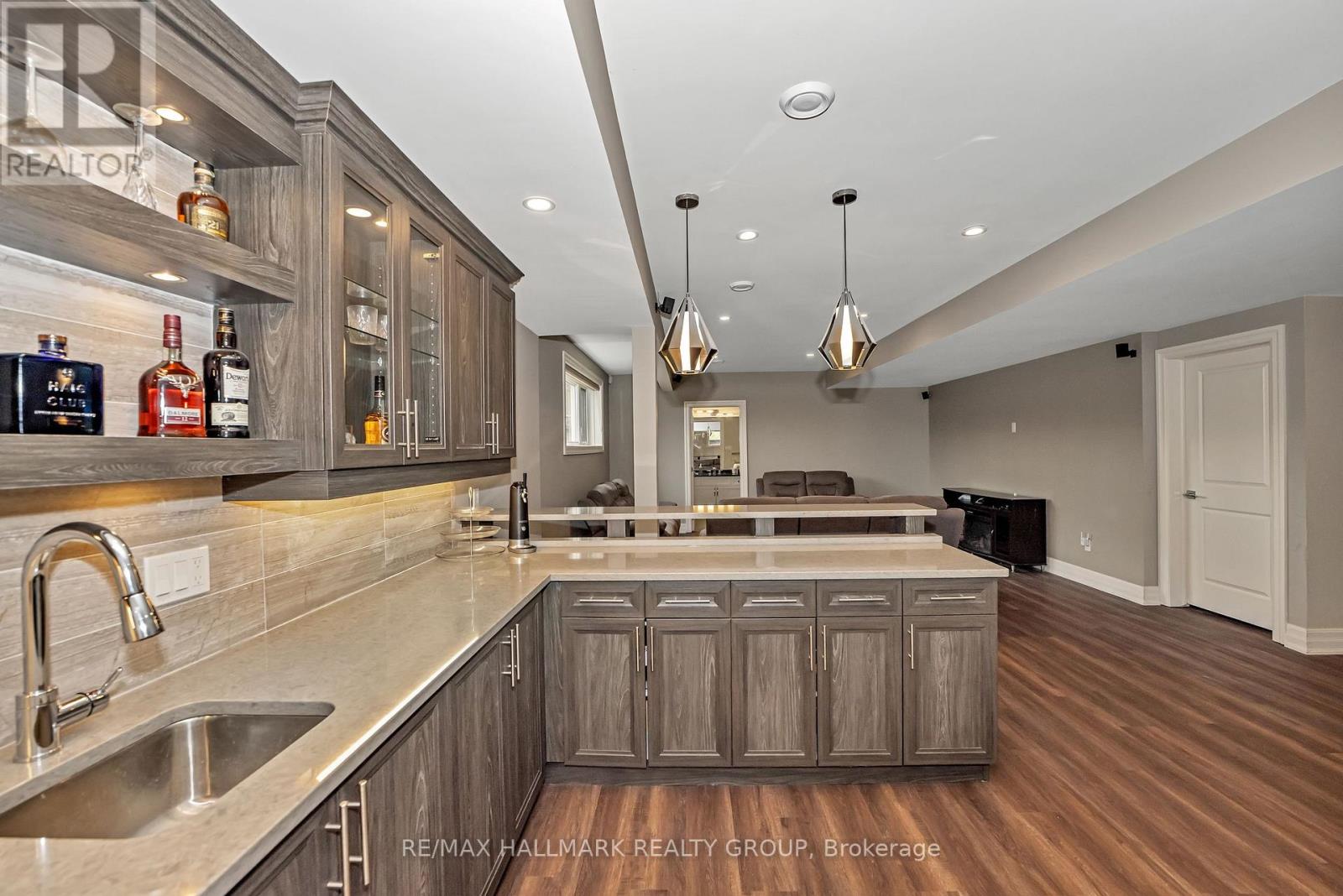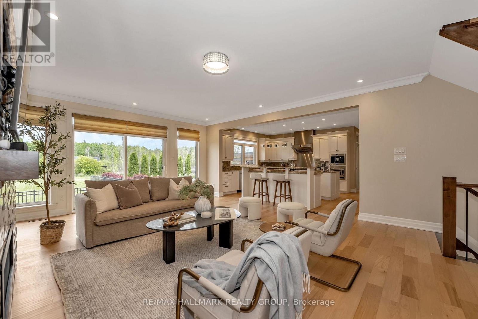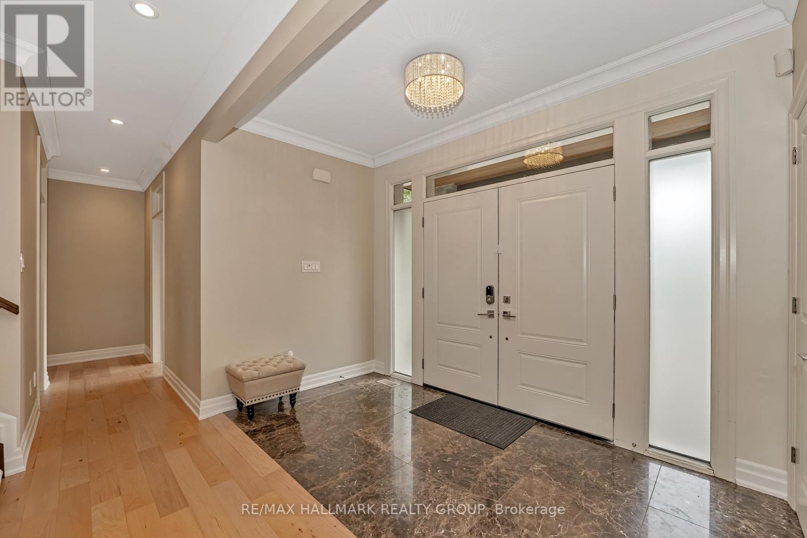 Welcome to this extraordinary estate in the prestigious Rideau Forest community of Manotick. Set on a beautifully landscaped lot, this custom-built residence offers over 7,000 sq. ft. of impeccably designed living space, tailored for both family comfort and grand-scale entertaining. Step inside to a light-filled main floor where elegance meets functionality. The luxurious primary suite is conveniently located on the main level, complete with a spa-inspired ensuite with heated floors and spacious walk-in closet. Each of the four additional bedrooms upstairs feature their own private ensuite and walk-in closet, offering unparalleled privacy and comfort. The heart of the home is the show-stopping chefs kitchen, boasting dual islands, a massive walk-in pantry, and premium appliances, perfect for both casual family meals and gourmet entertaining. A dedicated main floor office provides a quiet retreat for work or study. Unique to this home are two separate garages , two car on each side each leading into well-appointed mudrooms, offering ample storage and family-friendly convenience. Upstairs, a versatile loft area and a large laundry room add to the home's thoughtful layout. The finished lower level is an entertainers dream, featuring a kitchen and bar area, private movie theater that seats 7 in world class recliners, a fitness studio, lounge space, and a luxurious bathroom with a steam shower. Step outside to your private oasis, a resort-style pool with waterfall Hot Tub, complete with a fully equipped pool house and an outdoor kitchen, and lounge area with TV and surround sound, gas fireplace, bar and remote controlled screens, perfect for summer gatherings. Every detail of this home reflects quality, style, and timeless sophistication. An exceptional opportunity to own one of Manoticks finest estates. (id:2469)