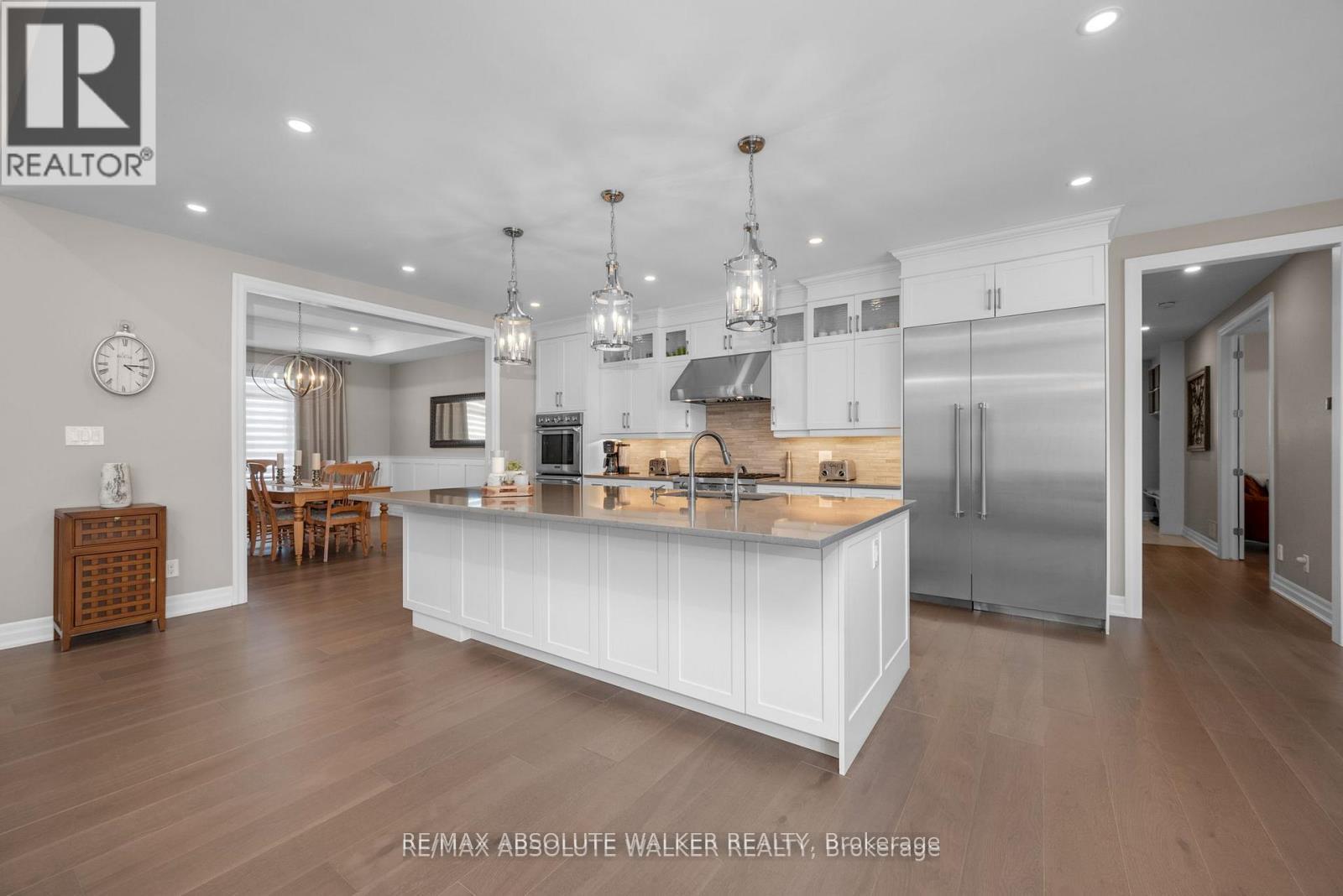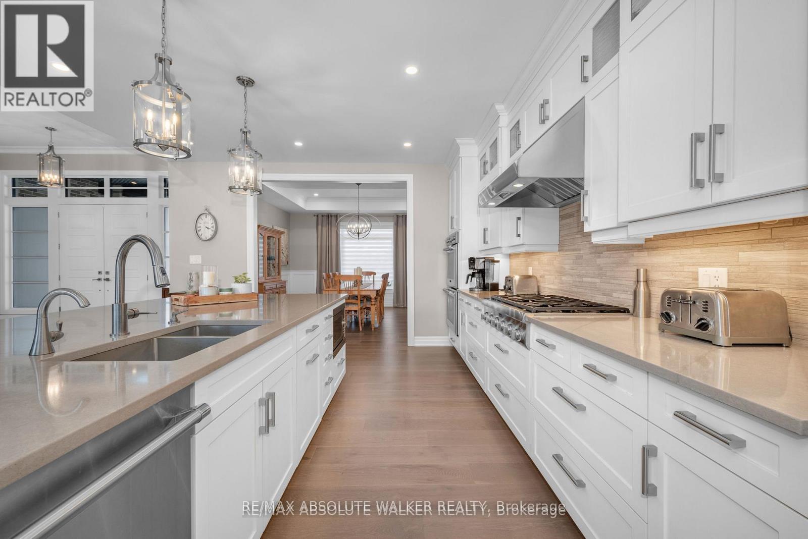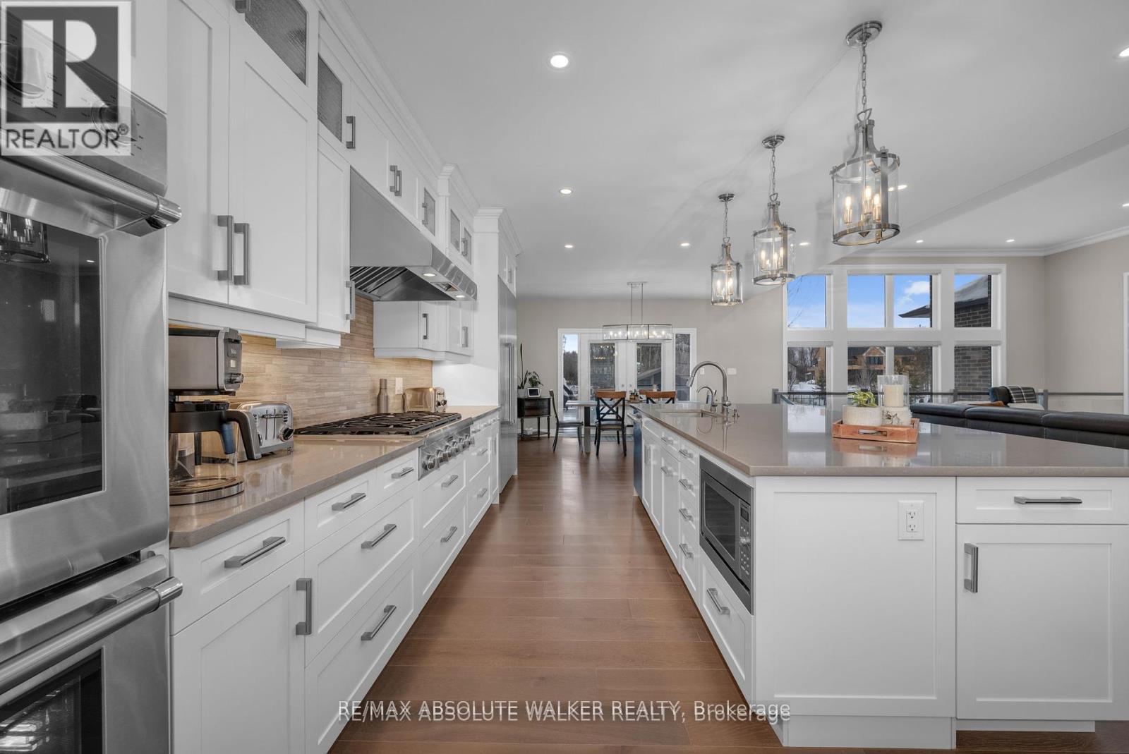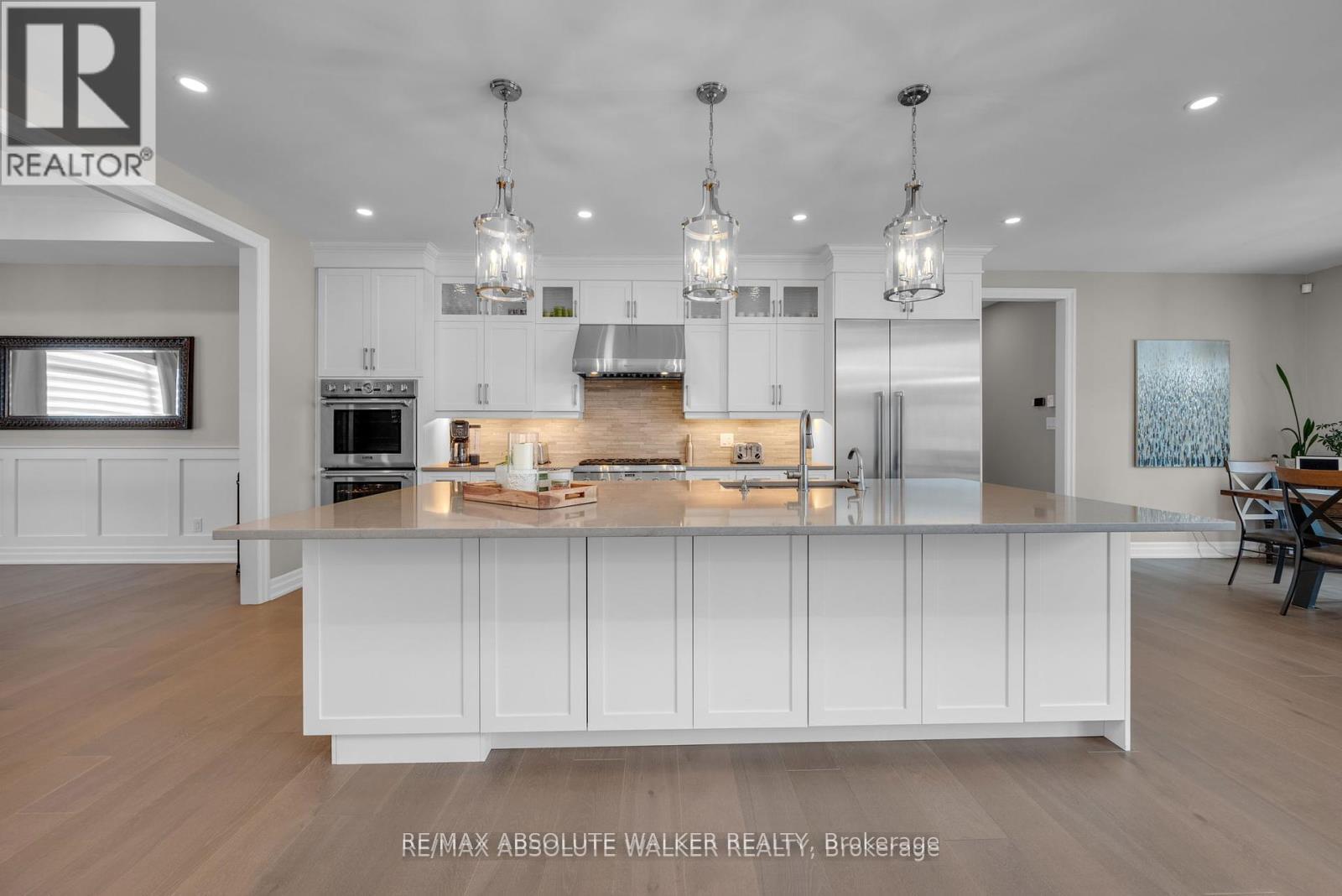 Step into this stunning custom John Gerard bungalow, featuring an expansive 3400 sqft of main-floor living space, enhanced by over 2000 sqft of beautifully finished basement. Exuding luxury and sophistication, this full brick residence is adorned with high-end finishes throughout. The main floor showcases, timeless trim work, elegant hardwood floors, tile, and soaring ceilings ranging from 9 to 12 feet, contributing to the home's grand ambiance. A fully functional main floor laundry room and pantry room offer convenience, while four spacious bedrooms (one currently used as an office) on the main level, along with a fifth bedroom and full washroom in the basement, accommodate families of all sizes.The gourmet kitchen is a culinary delight, equipped with top-tier Thermador appliances, soft-close drawers, and cupboards, and adorned with sleek quartz countertops in the kitchen and all washrooms. The basement is an entertainer's paradise, boasting a large recreation room, wet bar, billiards area, full gym (easily convertible to a sixth bedroom), and ample storage space with direct access to the triple-car garage. The property is situated on an oversized 1.1 acre lot, larger than neighboring properties, and includes a wooded area that ensures privacy and seclusion. This exceptional property perfectly combines style, comfort, and functionality, making it an ideal place to call home. (id:2469)